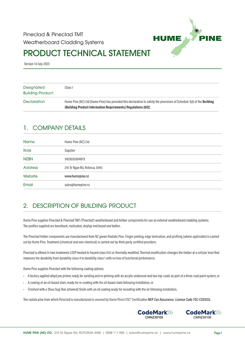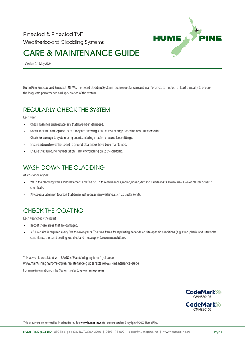 Hume Pine Pineclad & Pineclad TMT Care & Maintenance Guide V2.1